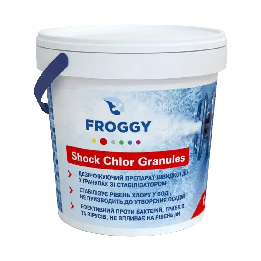 Швидкорозчинний препарат в гранулах на основі хлору для «ударного» (шокового) хлорування. Ефективно бореться з бактеріями, грибками, вірусами; окисляє (руйнує) органічні речовини, які викликають помутніння і забруднення води в басейні. Попереджає розмноження мікроорганізмів. Рекомендації щодо застосування Встановити значення рН на рівні 7,0-7,4 за допомогою препаратів