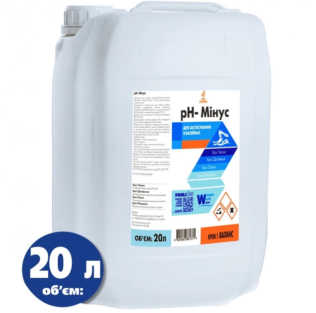 Засіб для зниження кислотно-лужного балансу в басейні Water World Window рН- 12 рідкий 20 л (4820062881371)