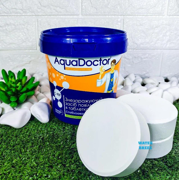 Тривалий (повільний) хлор AquaDoctor C 90Т у великих таблетках по 200 г тривалої дії для басейну 1 кг
