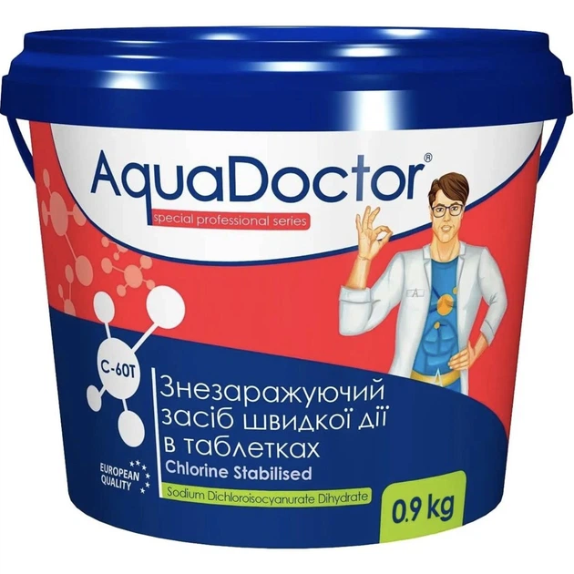 Хімія для басейну AquaDoctor Шок (швидкий) хлор С-60Т 0.9 кг у таблетках по 20 г для дезінфекції води в басейні