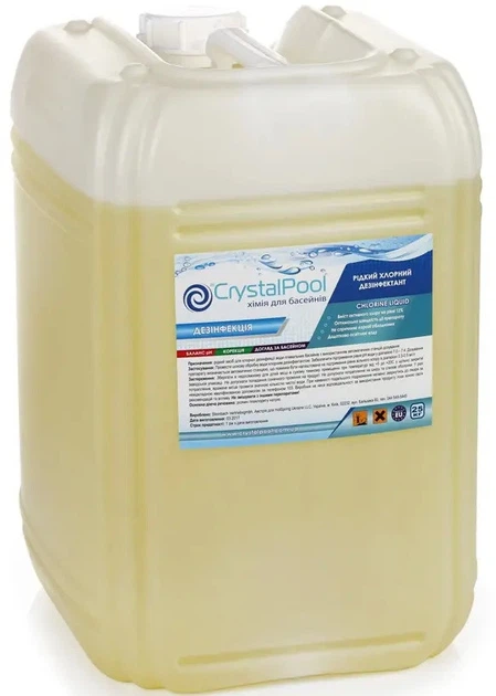 Гіпохлорит натрію (рідкий хлор) для дезінфекції води в басейні Crystal Pool Chlorine Liquid 25 кг (02625)