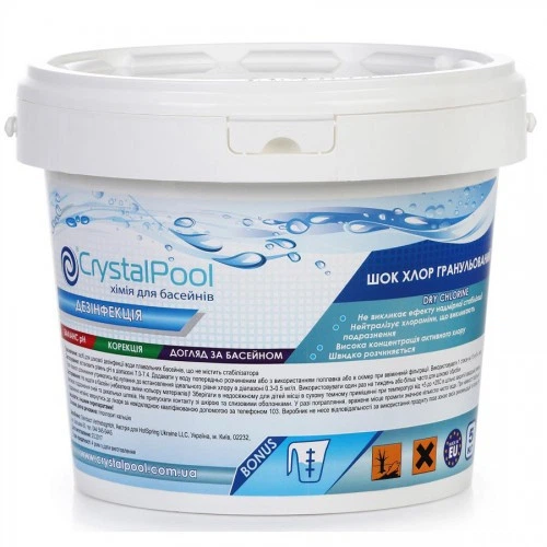 Шок (швидкий) хлор для басейну Crystal Pool Dry Chlorine Granules 1 кг в гранулах (02701)