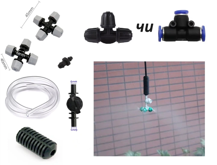 Набір комплект 40 форсунок пластик сірий дрібнодисперсного туману система туманоутворення насос Таймер