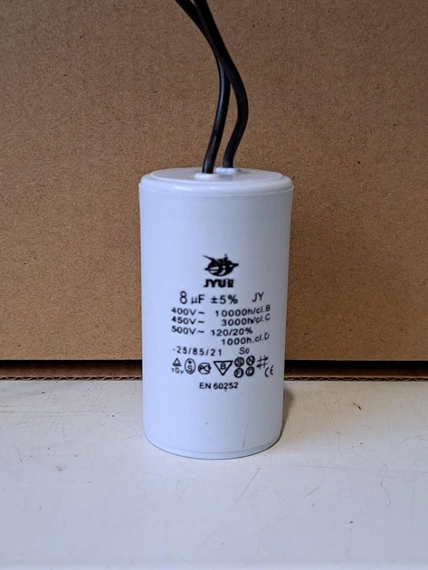 Конденсатор робочий CBB60 8 mF (дріт+болт)