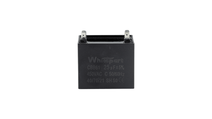 Конденсатор Whicepart CBB61 пуско-робочий 25 мкФ 450 В у прямокутному корпусі клеми