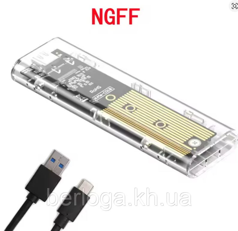 Кишеня Dynamode зовніш. для M.2 SSD NVMe/SATA combo через USB3.2 GEN2 Type-C безгвинт. пластик прозора DM-CAD-SSD09