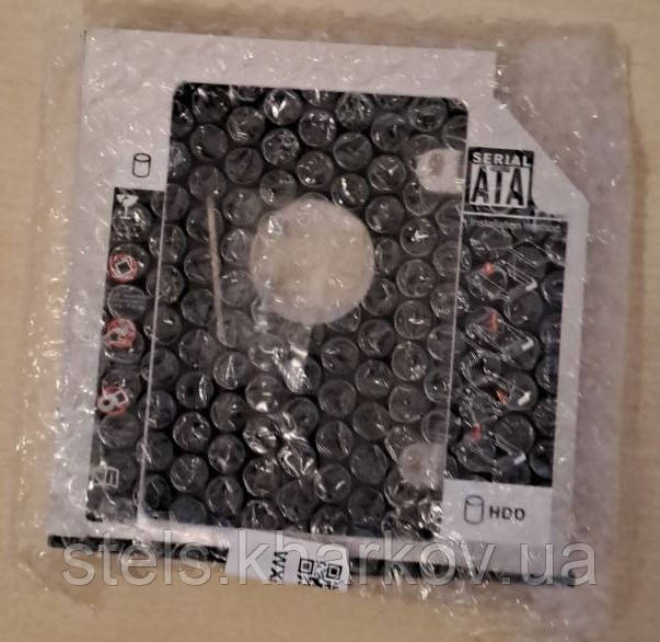 Упаковка: блістер Стан: новий Гарантія: 1 місяць Кишеня для встановлення другого жорсткого диска SATA 3.0 у відсік DVD 9.5 мм SATA (optibay caddy) алюміній У комплектації кишені наявність викрутки і передньої кришки-заглушки може змінюватись: як бути, так і не бути.