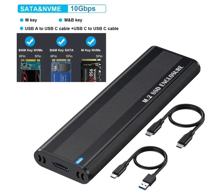 Зовнішня кишеня для SSD M.2 NVME (PCI) & NGFF (Sata), кабель Usb 3.1 (USB-A &Type-C) TRY 10Gbps алюміній чорний