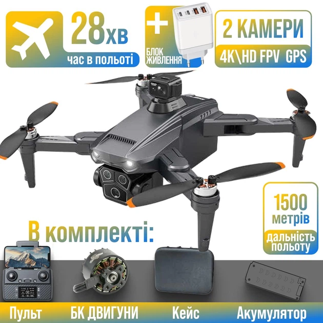 Квадрокоптер LSRC S6S – дрон із камерою 4К, ESC, FPV, GPS, БК, до 1,5 км, до 25 хв, кейс