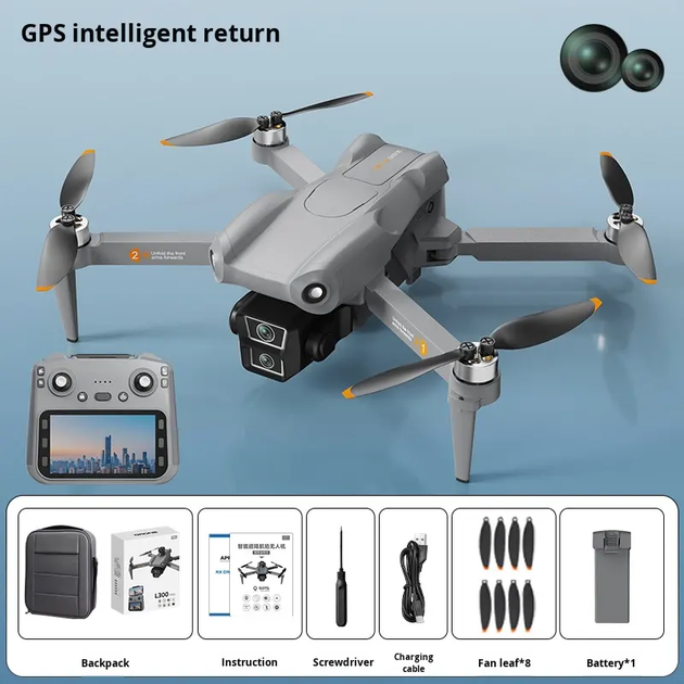 Квадрокоптер L300 MAX з GPS та 4K камерою – до 28 хв. польоту Дрон з пультом з екраном 5.9" сумкою в комплекті