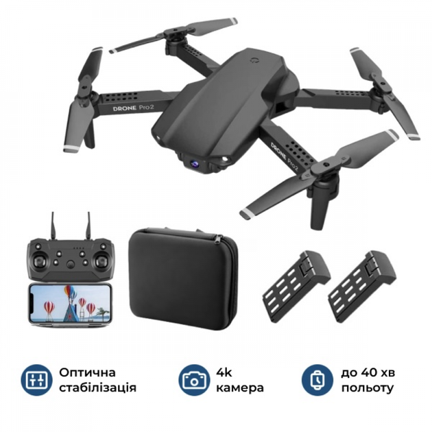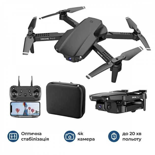 Квадрокоптер E99 Pro 2 Black Plus – дрон із 4K та HD камерами, FPV, Optical, до 40 хв. + кейс