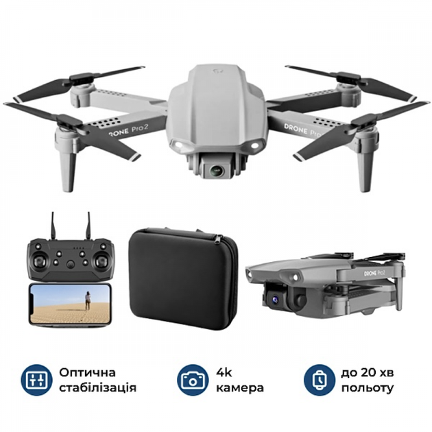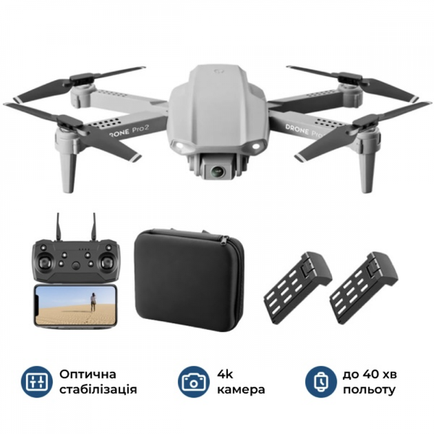 Квадрокоптер E99 Pro 2 Gray Plus – дрон із 4K та HD камерами, FPV, Optical, до 40 хв. + кейс