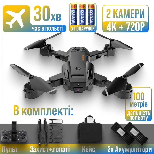 Квадрокоптер F196 з 4K камерою, FPV, до 20 хв польоту, дальність 200 м, Wi-Fi керування + кейс у комплекті