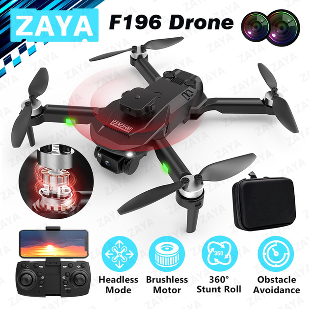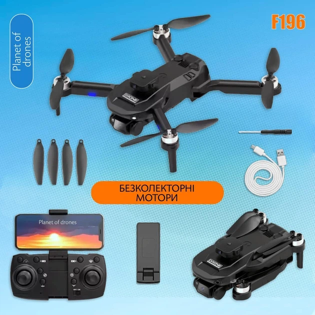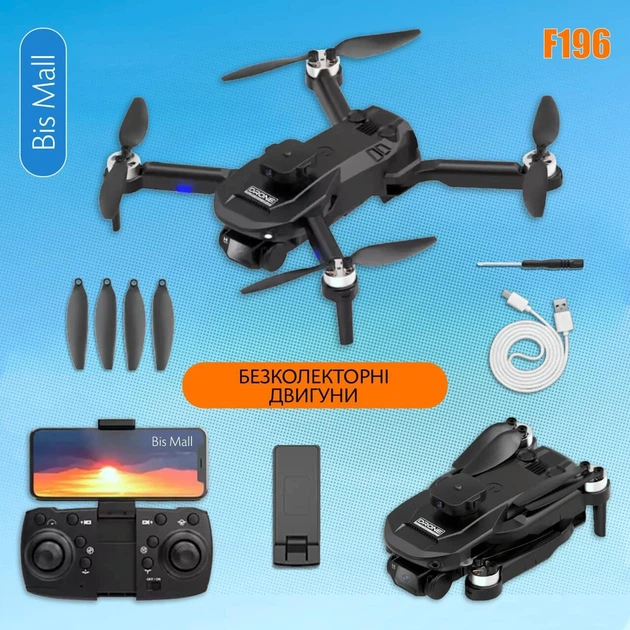 Квадрокоптер F196 – дрон з 4K і HD камерами, FPV, БК двигуни, АКБ у комплекті, Фліпи (3D-перевороти на 360 градусів), Утрима