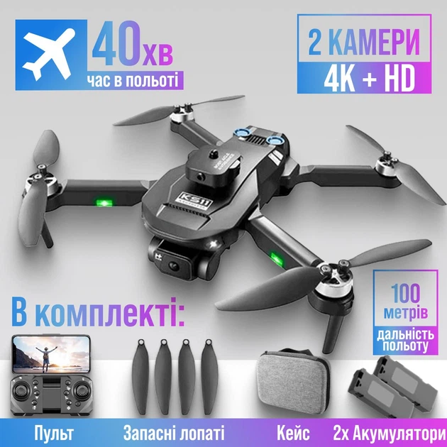 Квадрокоптер E99S PRO Чорний - дрон з 4К HD камерою FPV, БК мотори Уникнення перешкод до 100м 40хв + кейс (2 акумулятори)