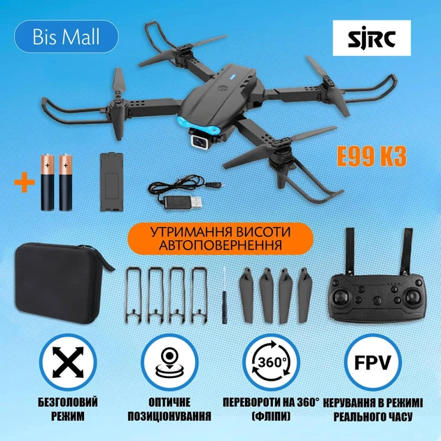 Квадрокоптер E99 K3 з камерою 4K HD FPV Барометр, до 20 хвилин + Кейс Чорний