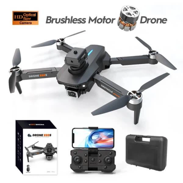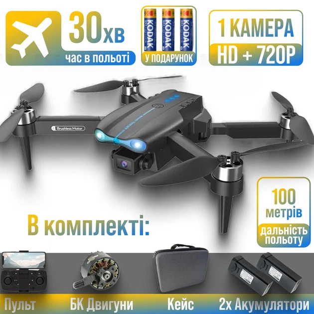 Квадрокоптер E88S - дрон з 4K камерою, безколекторні двигуни, Headless, FPV, уникнення перешкод, до 15 хвилин, до 150 м, чор