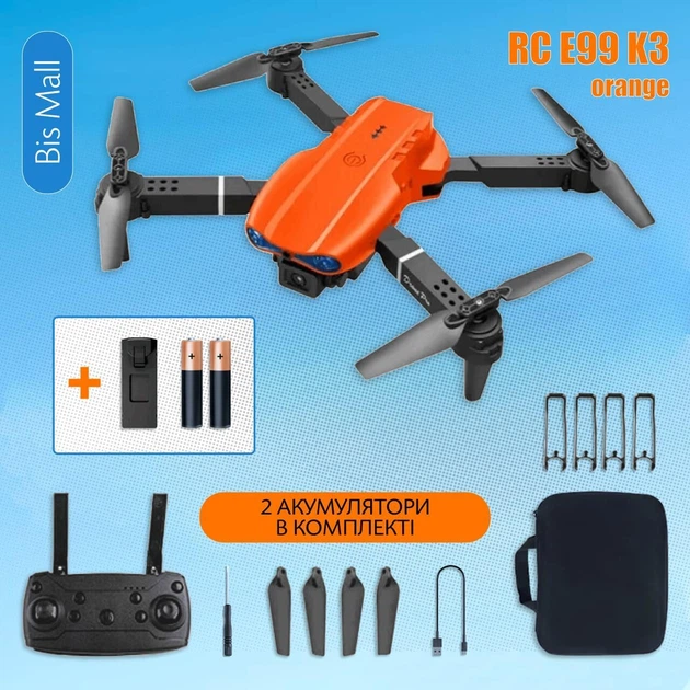 Квадрокоптер E99 K3 дрон із 4K та HD камерою FPV до 20 хв. польоту (2 акумулятори) Помаранчевий