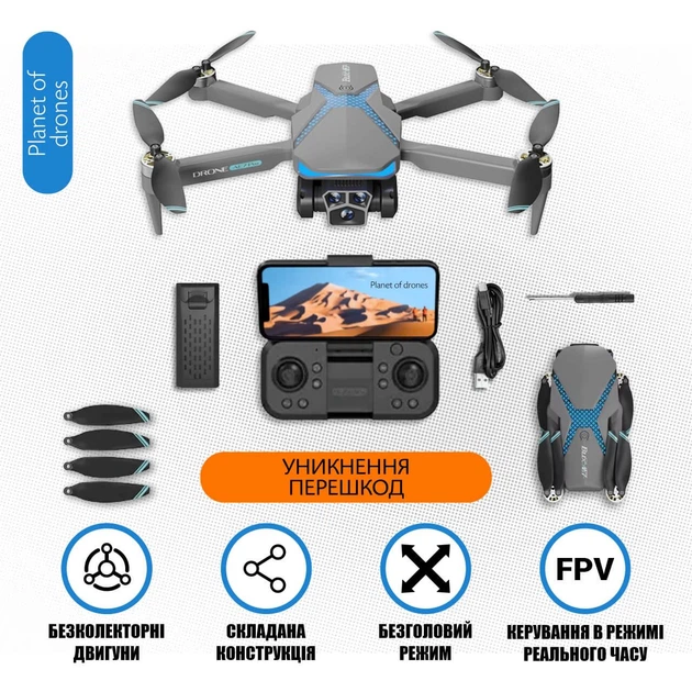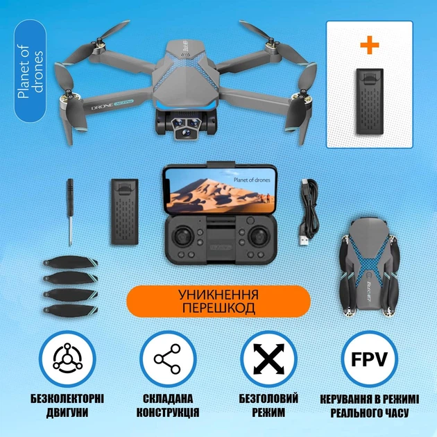 Квадрокоптер AE19 з 4K-камерою, БК моторами, обходом перешкод до 20 хв. польоту РК пульт