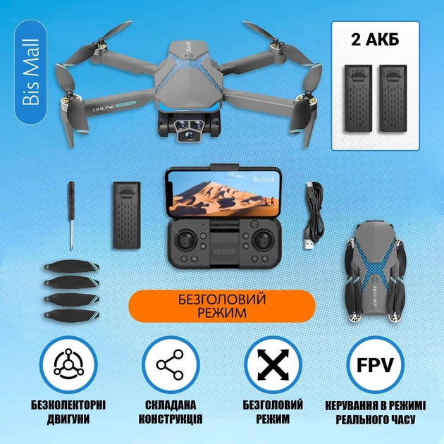 Квадрокоптер AE7 – дрон з 4K камерою, Безколекторні двигуни, 2 акумулятори у комплекті, Уникнення перешкод, Безголовий режим