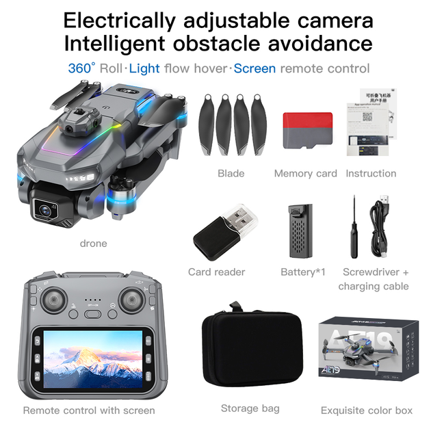 Квадрокоптер AE19 з 4K-камерою, БК моторами, обходом перешкод до 20 хв польоту РК пульт