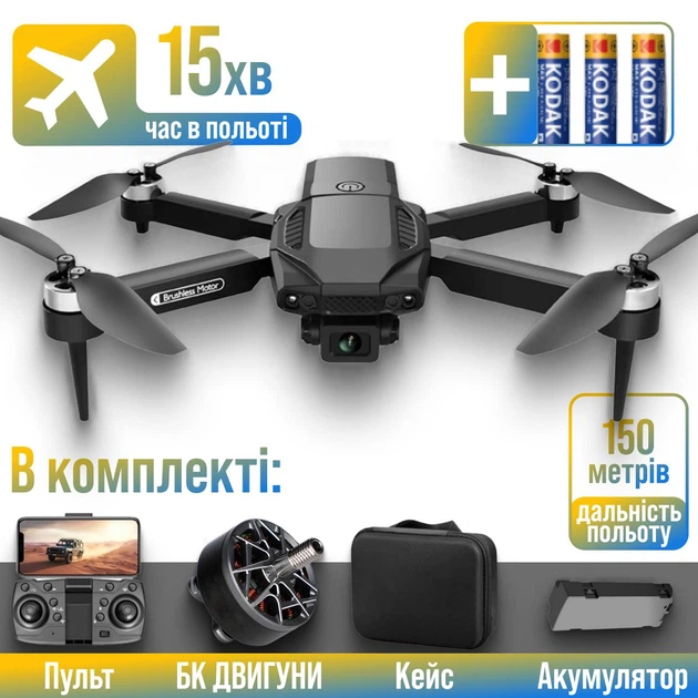 Квадрокоптер F196 з камерою +кейс 4К HD FPV дальність до 150м 15 хв + 2 акумулятори/батарейки