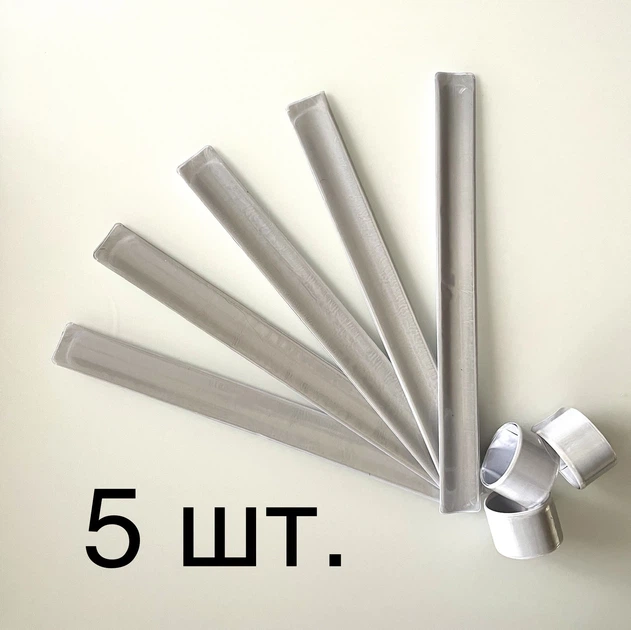Світловідбивна стрічка браслет (флікер) для пішоходів 30 х 3 см, срібляста, 5 шт.