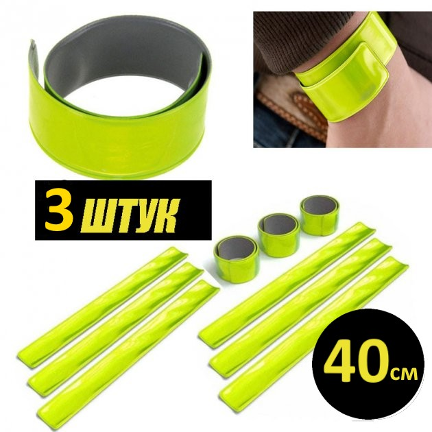 Світловідбивний браслет 40 см, флікер, катафот на рукав, стрічка пов'язка, що відбиває Набір 3 шт. No Dark