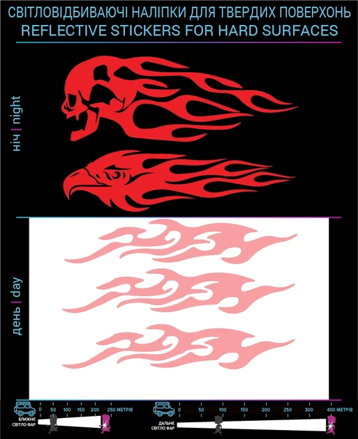 Наліпки Кістки світловідбиваючі LOOM червоні світловідбивні стікери для твердих поверхонь