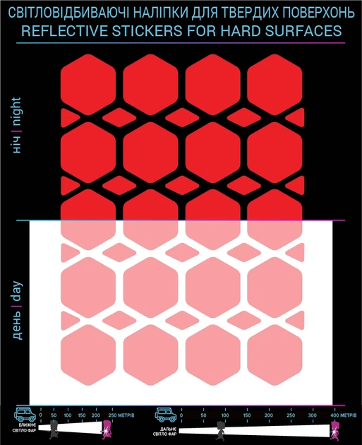 Наліпки шестикутники №1 світловідбиваючі LOOM червоні світловідбивні стікери для твердих поверхонь