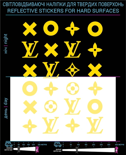 Наліпки LV світловідбивні LOOM жовті світловідбивні стікери для твердих поверхонь