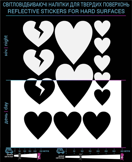 Наліпки Розбиті Серця світловідбиваючі LOOM чорні світловідбивні стікери для твердих поверхонь