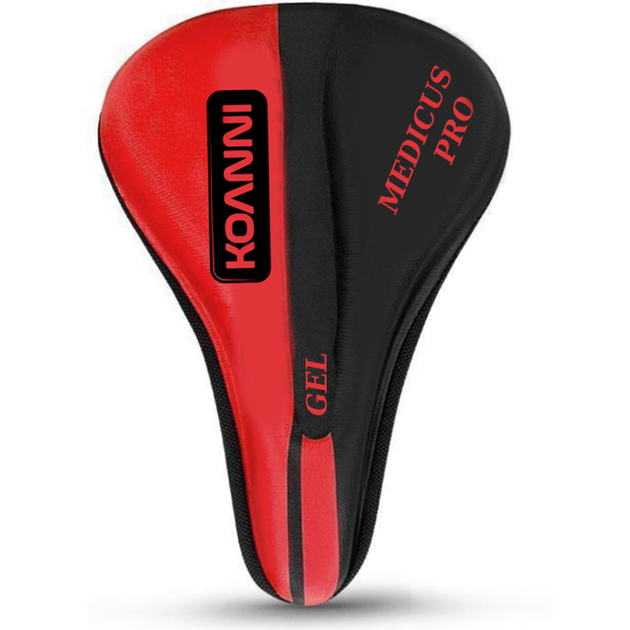 Гелева накладка на сідло велосипеда чорно-червона з амортизацією та світловідбиваючою смугою