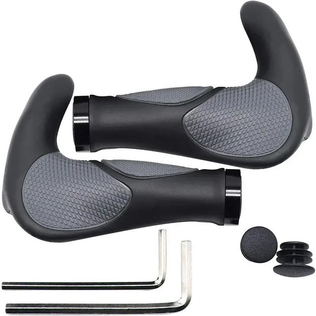 Анатомічні ергономічні гумові велосипедні ручки грипси для керма на замках з упорами ріжками 140 мм (481211-Prob)
