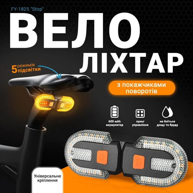 Задній габаритний вело ліхтар із поворотами FY-1825 "STOP" yellow фара з дистанційним пультом керування
