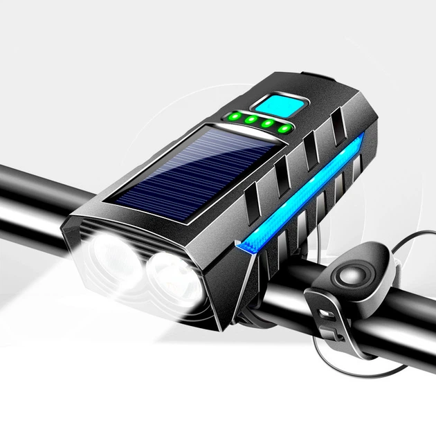 Велосипедна LED фара блакитна із сонячною батареєю сигналом 4000 мАг USB повербанк