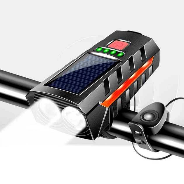 Велосипедна LED фара червона із сонячною батареєю сигналом 4000 мАг USB повербанк