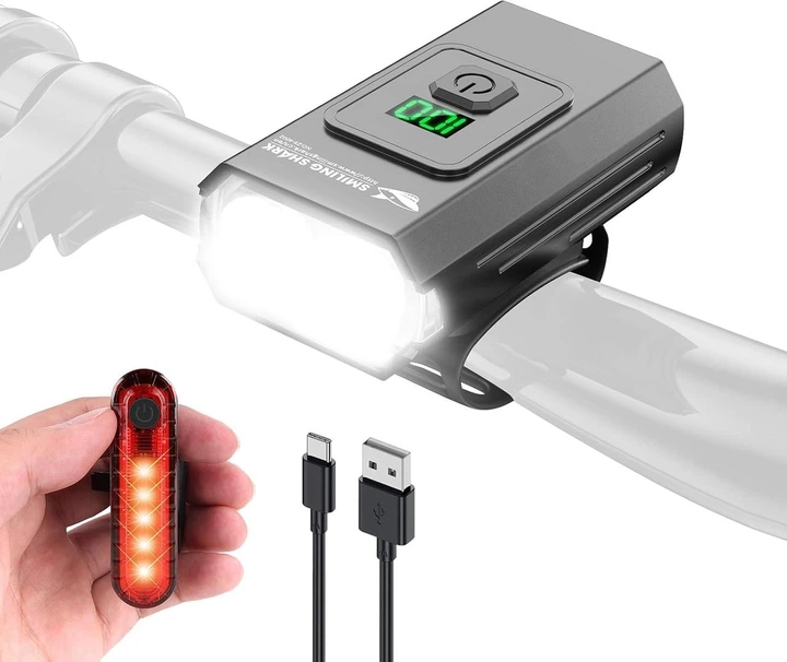Велосипедні фари Усміхнена акула світлодіодний передній ліхтар із затискачем і червоний