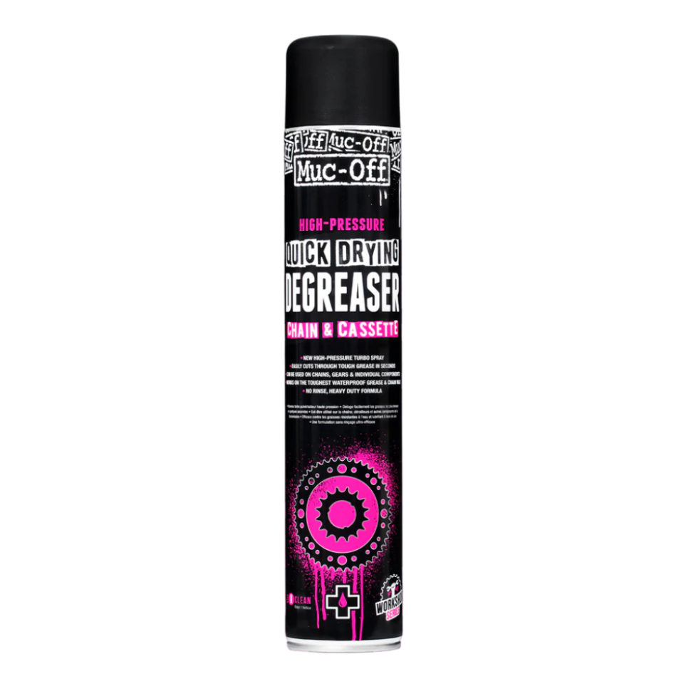 Наш швидковисихаючий знежирювач з його надпотужною формулою та турбонаддувом під високим тиском полегшує роботу зі змивання олії. З легкістю видаляючи мастило з ланцюга та касет, він швидко видаляє густі нарости та забруднення. Його унікальна суха формула з «нульовим залишком» означає, що після очищення він випаровується, залишаючи чисту поверхню, без залишку. Він змиває