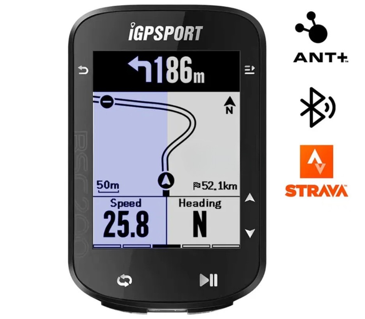 Велокомп'ютер iGPSport BSC200 з GPS та підсвічуванням Black, Strava підтримка датчиків