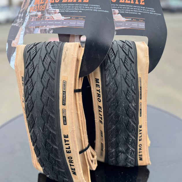 Комплект покришок на велосипед 700*45C (28") OBOR Metro Elite (W3109) Foldable, 60 TPI SkinWall (з беж. боковиною)
