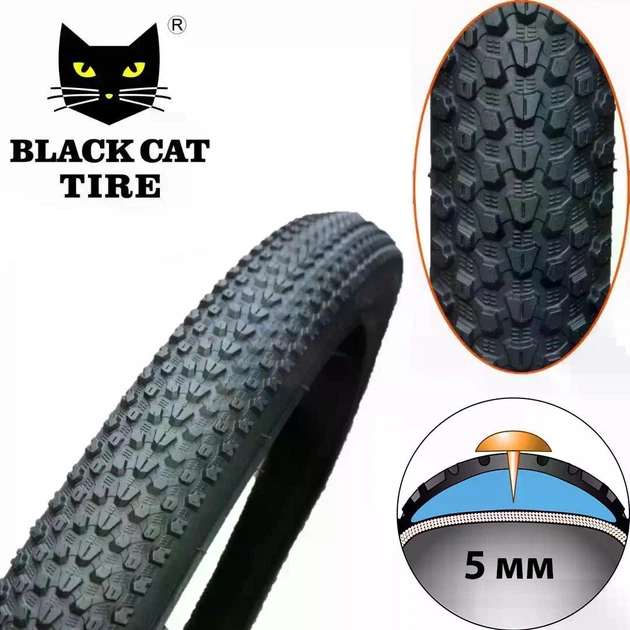 Покришка велосипедна антипрокольна BLACK CAT 26 x 2.125 з антипрокольною вставкою 5 мм
