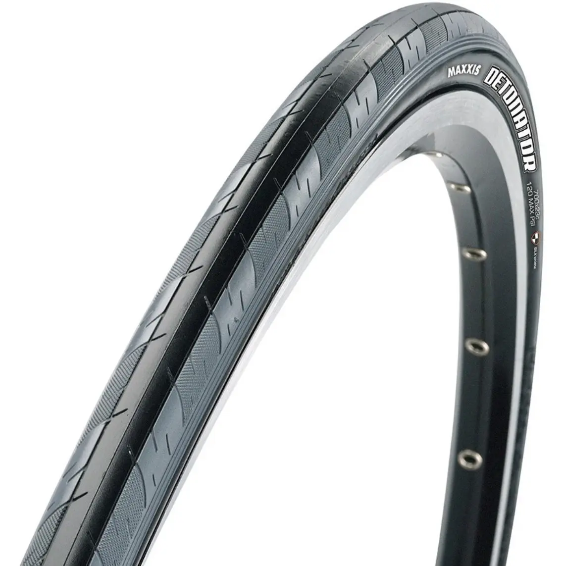 Шосейна покришка Maxxis Detonator відмінно підійде для тренувань. Динамічний малюнок протектора забезпечує низький опір коченню. Міцний компаунд стійкий до стирання. Покришка оснащена антипрокольним шаром Silkworm, який розміщений безпосередньо під протектором. Характеристики Тип: жорсткий. TPI: 60. Безкамерне використання: немає. Колір: чорний. Вага: близько 245 г.