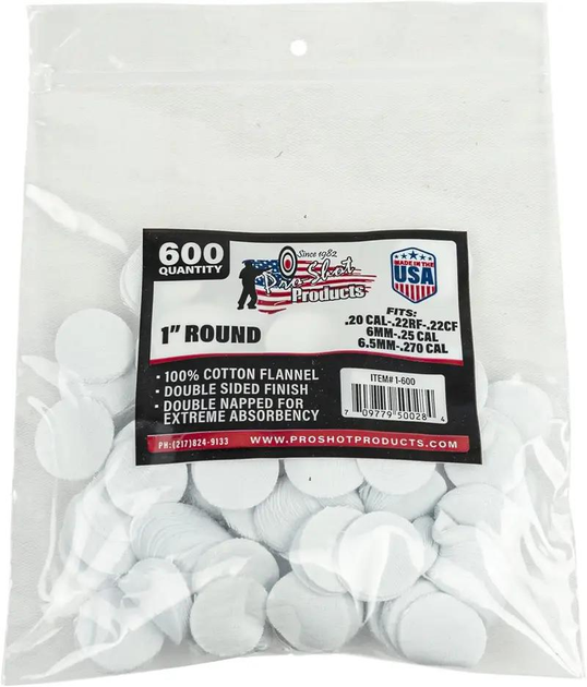 Патч для чистки Pro-Shot кал .22 - .270. Круглий. 600 шт/уп