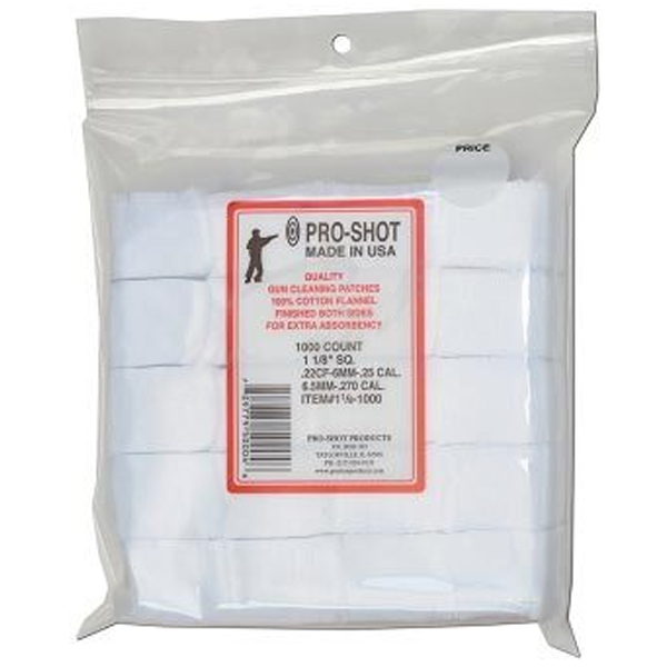 Патч для чищення Pro-Shot .22-.270 Cal.-1 1/8 квадратні, 1000 шт / уп, бавовна (11 / 8-1000)