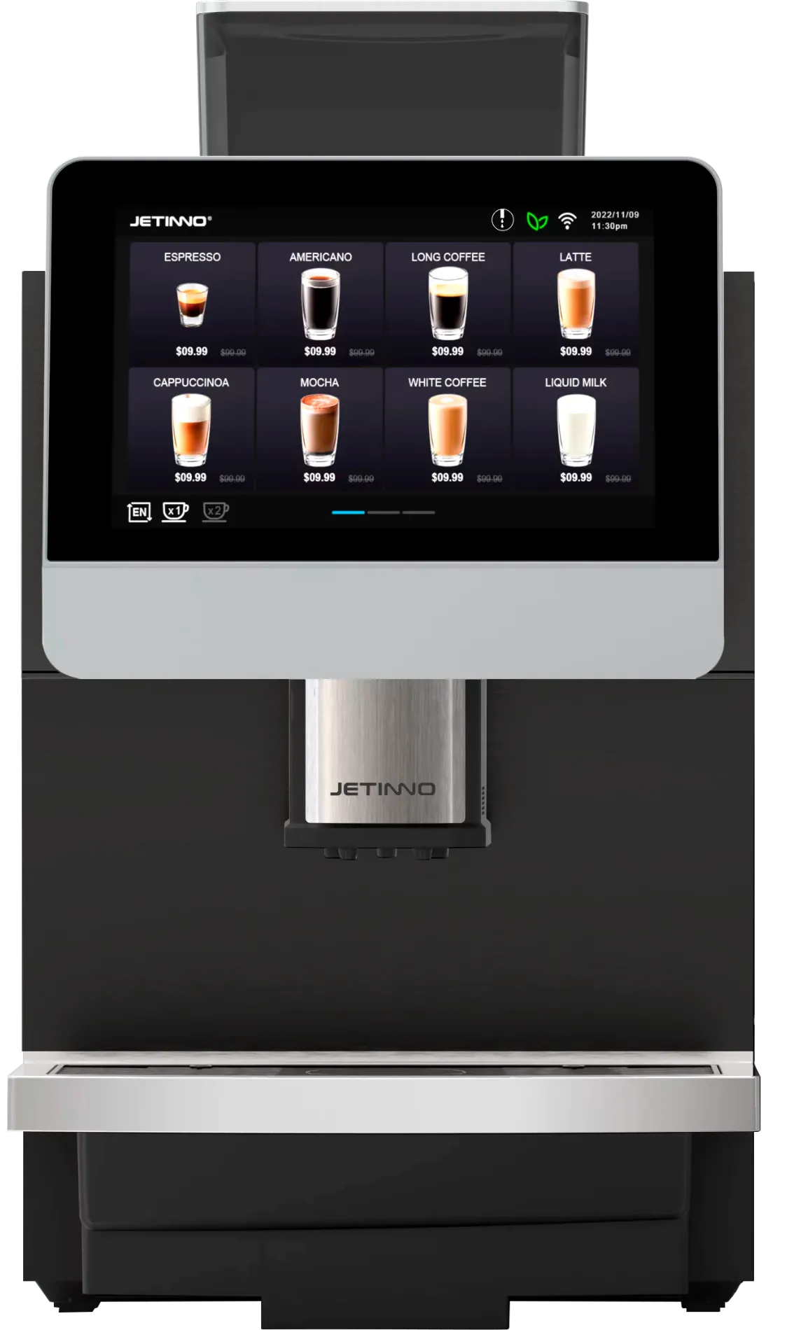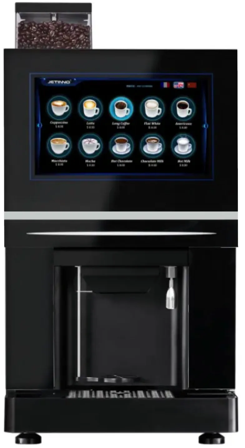 Завдяки передовій технології, машина Jetinno JL24 готує каву від зерна до чашки за неймовірно короткий час, витрачаючи всього 40 секунд. Це дає змогу насолоджуватися вишуканим ароматом і насиченим смаком еспресо без зайвих зволікань. Персоналізація є нашим пріоритетом. Автомат Jetinno JL24 пропонує понад 20 напоїв за допомогою 14-дюймового сенсорного екрана. Обирайте свій улюблений напій і