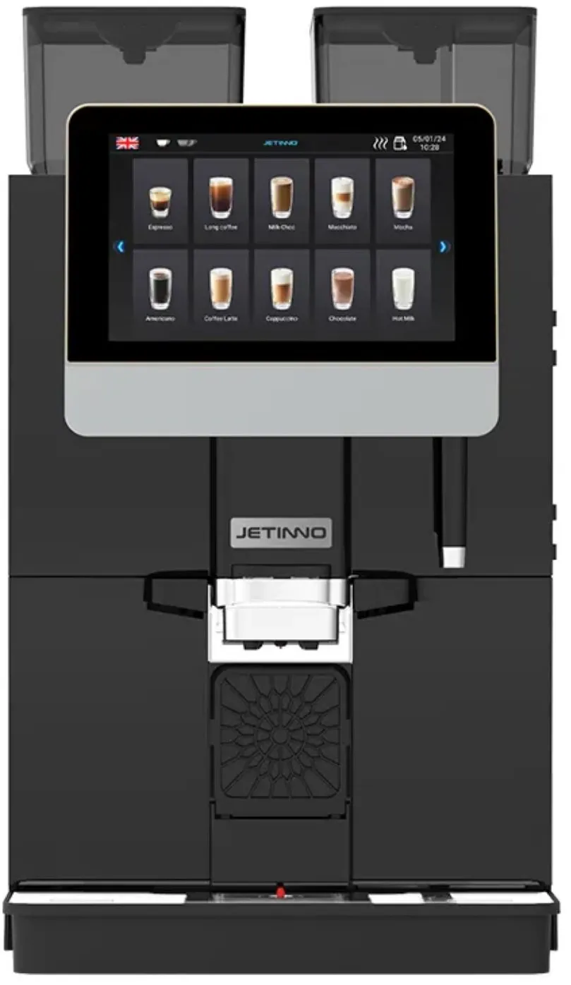 Jetinno JL28 - це настільна автоматична кавоварка з сенсорним екраном і невеликим вбудованим диспенсером для чашок. Розрахована на приготування понад 20 напоїв, зокрема еспресо, американо, капучино, мокко, молоко, шоколаду і навіть чаю, тому стане чудовим рішенням для офісу або кавової точки. За день готує до 150 чашок. У кавоварку Jetinno JL28 вбудований модуль автоматичної подачі