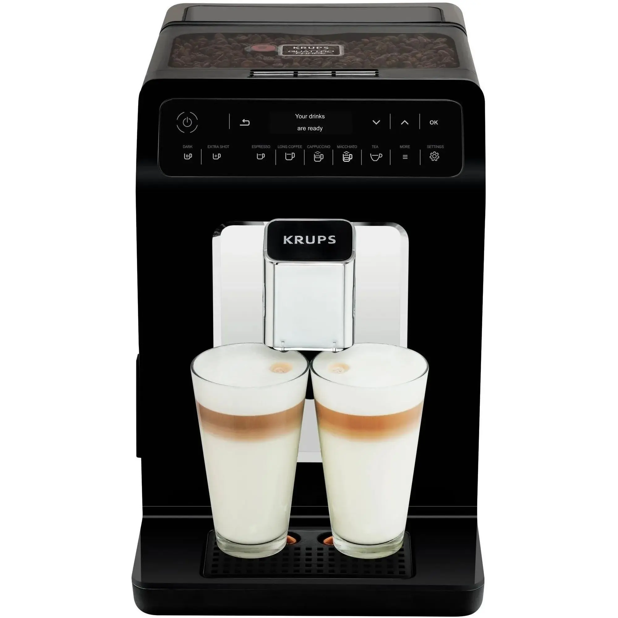 Кавомашина Krups Evidence Eco Design EA897A10 Кава, яку ти любиш Готуй улюблений напій, вибравши будь-яку з автоматичних програм. Міцний еспресо, вишуканий мак'ято або лате з пишною пінкою? Або кастомізуй напій під себе, налаштувавши міцність, кількість води або молока. Потрібно більше енергії? При виборі напою можна натиснути кнопку Extra Shot, щоб отримати додаткову порцію еспресо до обраного напою. Хочеш приготувати відразу 2 напої? Просто натисни на кнопку х2 перед початком приготування і поділися задоволенням з близькою людиною.