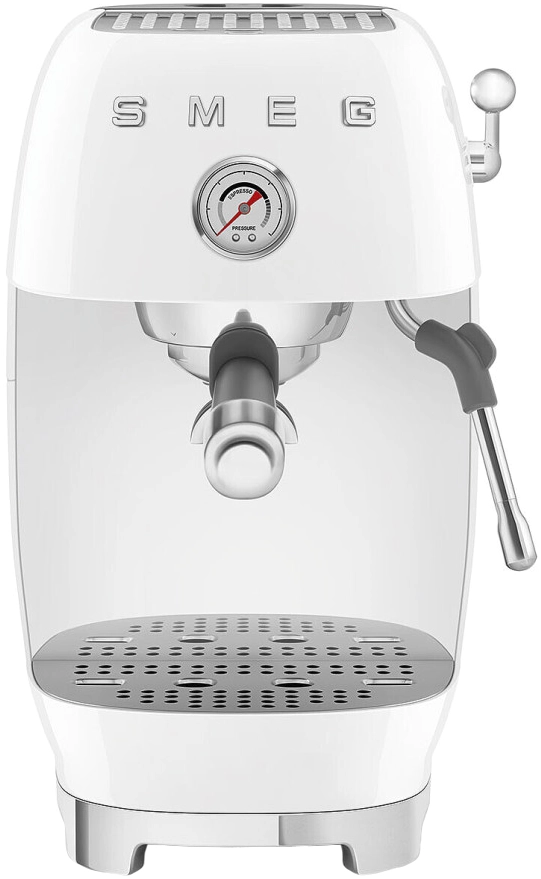 Відчуйте смак натхнення Насолоджуйтесь багатим смаком кави і готуйте кавові напої як справжній бариста з ручною кавоваркою Smeg ECF03. Ця стильна модель поєднує технології професійних кавоварок і фірмову естетику Smeg в дусі 50-х років, перетворюючи приготування кави в справжній ритуал. Еспресо, капучино, лате або навіть освіжаючий Cold Brew — тепер кожен напій можна приготувати вдома і