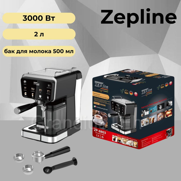 Кавоварка рожкова Zepline ZP-6803, 3000 Вт, капучинатор, кавоварка еспресо автоматина з молочником